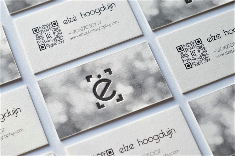 Dizaine sumaniai panaudotas QR kodas, bei pasirinktas juodai baltas stilius. Klientė norėjo fotovaizdo galinėje dalyje, kadangi tai susiję su jos veikla, o letterpress spaudos būdas tokių galimybių neturi, todėl buvo pasiūlyta letterpress’ą kombinuoti su skaitmenine spauda. Rezultatas – įspūdingas!