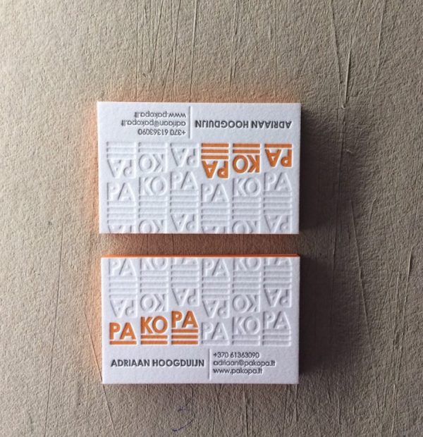 Vizitinė kortelė privalo būti kokybiška ir išskirtinė, nes tik taip jūs galėsite suformuoti apie save gerą pirmąjį įspūdį. Letterpress spaudai šis iššūkis yra vieni juokai. Kokybiškas storas popierius, kongrevas ir dažytas kraštelis – tai sėkmės formulė kuria mes vadovaujamės gaminant vizitines korteles.