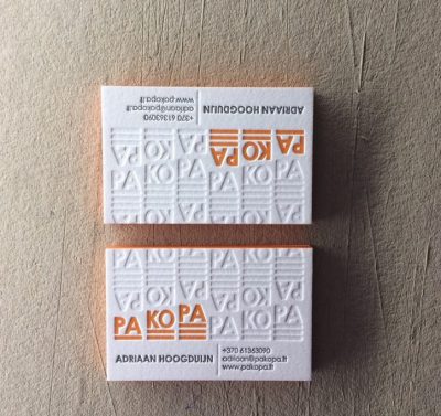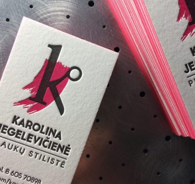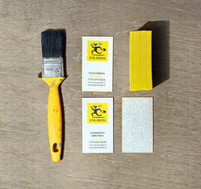 Aukštos kokybės vizitinės kortelės, atspausdintos letterpress būdu ant vidutinio storumo, tekstūrinio geltono popieriaus Keaykolour. Kiekviena kortelė pasižymi subtiliu reljefu ir sodria spaudos spalva, kuri suteikia išskirtinumo ir profesionalumo pojūtį. Sukurtos su meile detalėms – tai ne tik kontaktinė priemonė, bet ir vizualinis įspūdis, kuris išlieka.